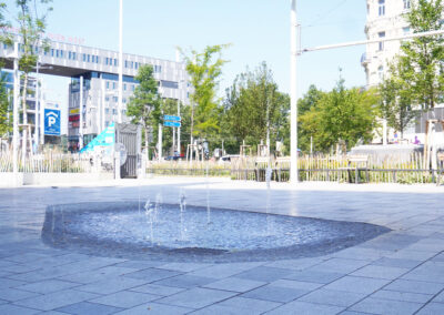 Das Wasserkonzept am Christian-Broda-Platz zeigt, dass nicht ein System alles leisten muss. Grobtropfige Wasserspiele und feiner Hochdrucknebel erfüllen unterschiedliche Funktionen – von direkter Abkühlung über Aufenthaltsqualität bis hin zur atmosphärischen Klimawirkung. Mithilfe dieser Kombination entsteht ein flexibles, steuerbares Kühlungssystem, das sowohl eine spürbare Erleichterung für Menschen bietet als auch ressourcenschonend arbeitet.