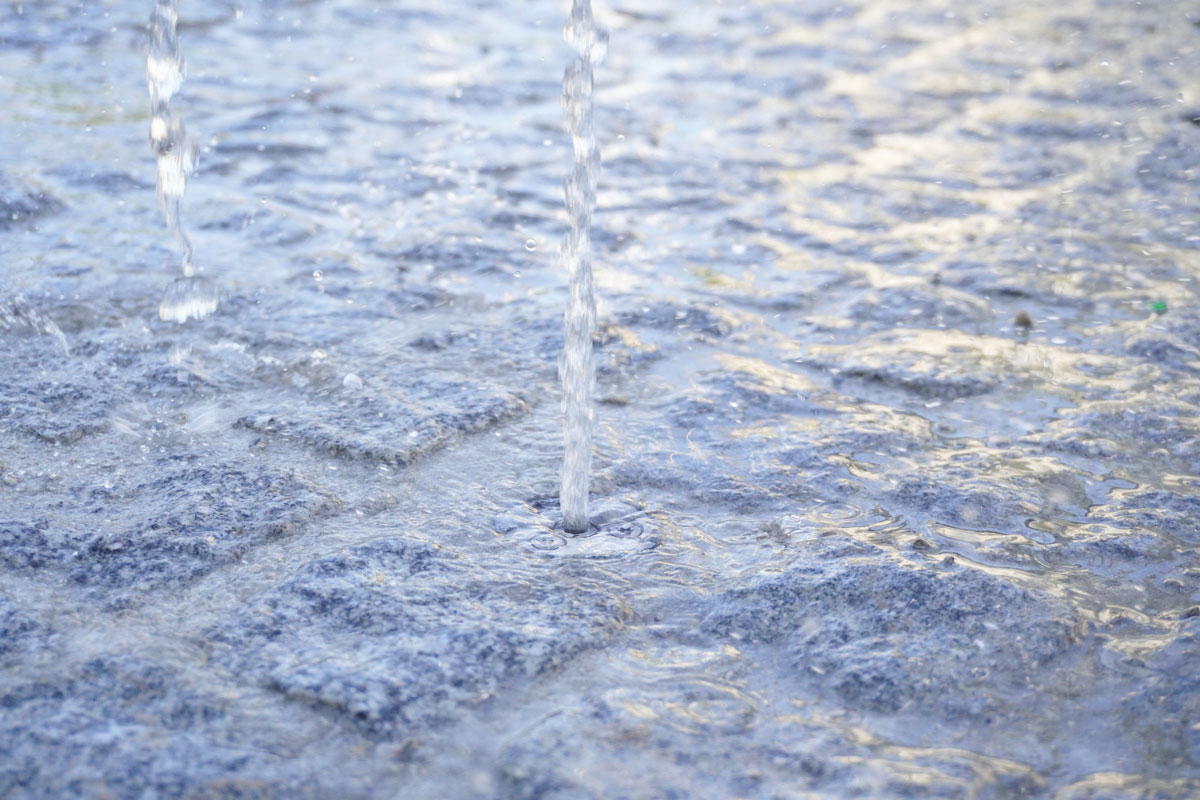 Drei Lichtschrankensysteme steuern die Wasserspiele: Sie aktivieren sich nur dann, wenn Personen den Bereich betreten und auch nur, wenn äußere Bedingungen wie Temperatur und Tageszeit dies sinnvoll erscheinen lassen. Auf diese Weise wird ein Dauerbetrieb vermieden und der Wasserverbrauch gezielt begrenzt.