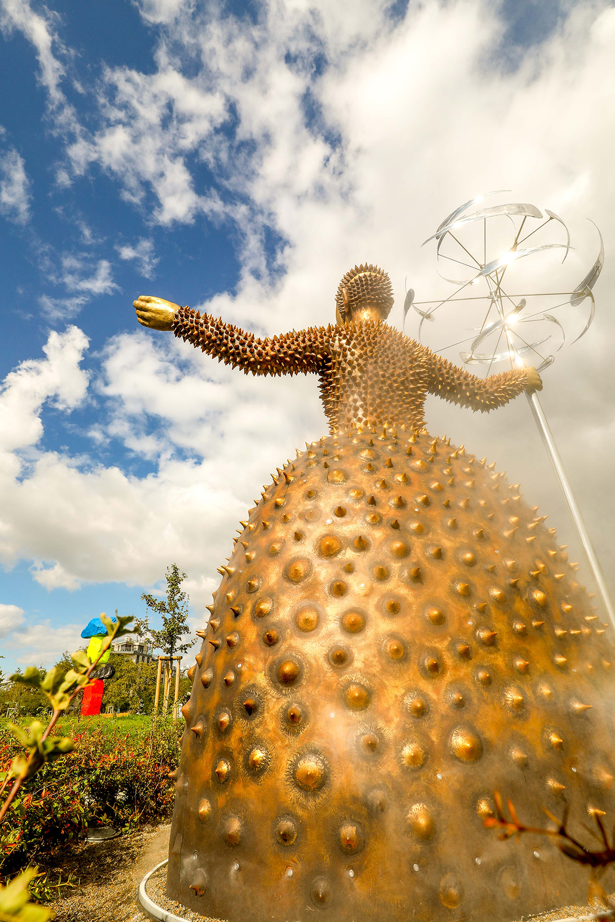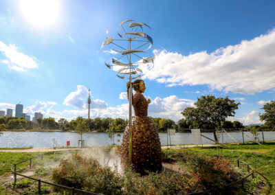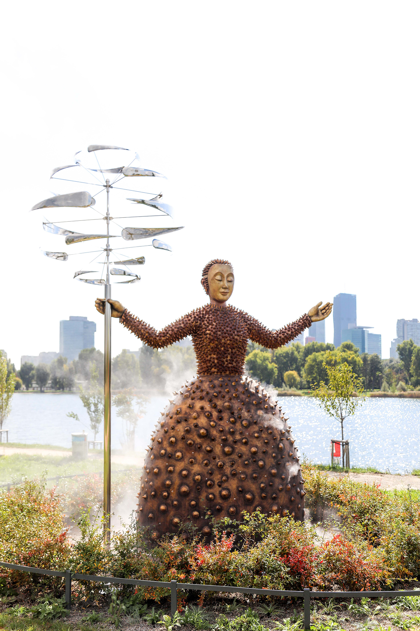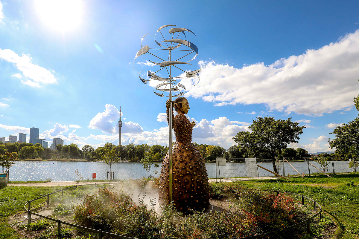 Die von André Heller gestaltete Wasserwächterin steht am Ufer der Alten Donau und verkörpert als Schutzpatronin des Wassers die mythologische Tradition von Flussgottheiten. Die vier Meter hohe Skulptur mit einem über fünf Meter hohen Windspiel in der Hand wacht nun über das Element, das sie symbolisiert.