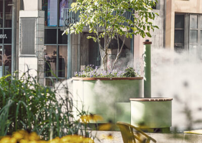 Damit können die Konstanzerinnen und Konstanzer sich an sommerlich-heißen Tagen bei Erledigungen in der Stadt wunderbar erfrischen. Und unsere integrierte Bewässerung schafft noch dazu optimale Bedingungen für die Bepflanzung.